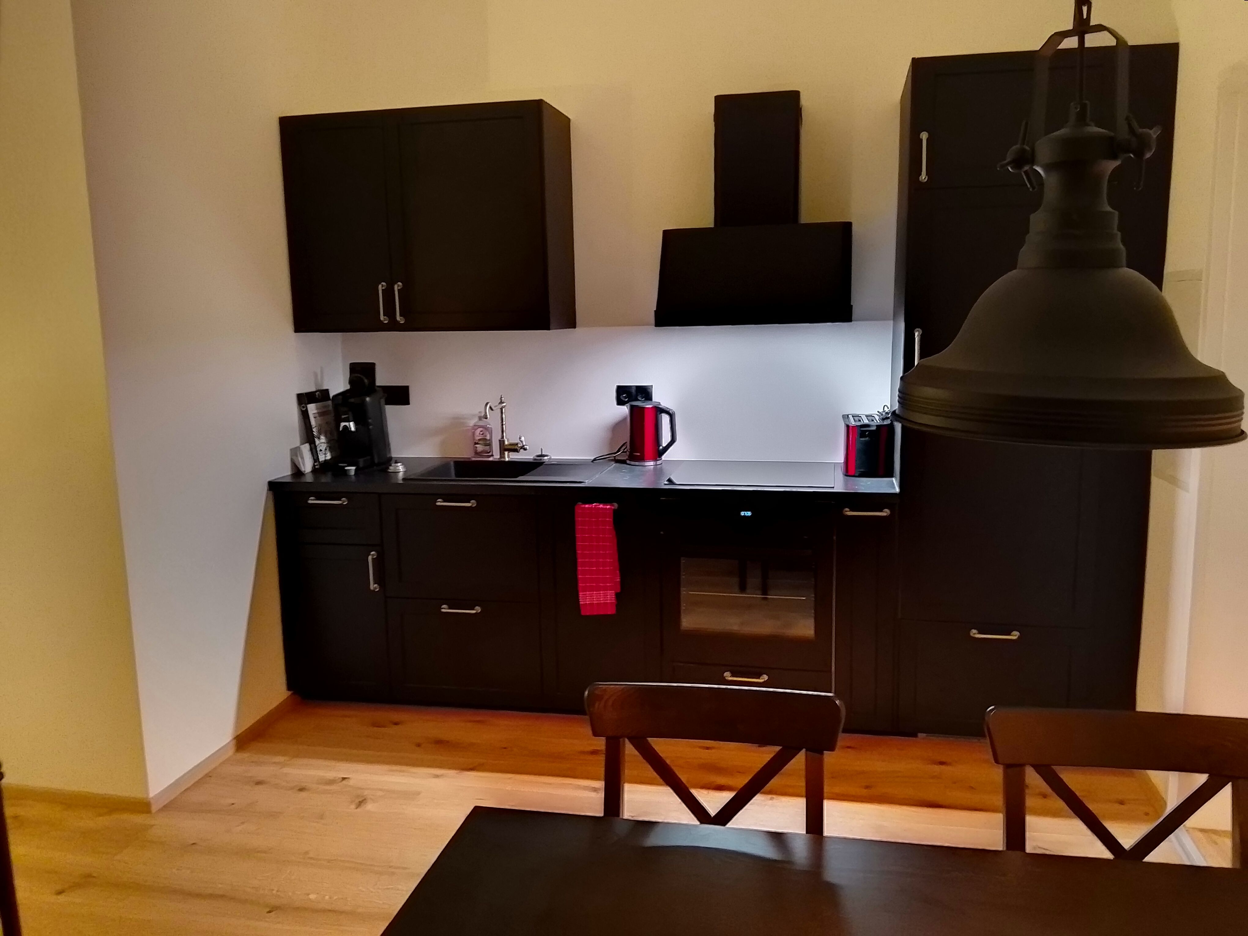 In unmittelbarer Nähe laden Heurigenbetriebe und Restaurants zur Einkehr ein – mit regionalen Spezialitäten und gemütlicher Atmosphäre. Wer lieber selbst kocht, findet in der voll ausgestatteten Küche der Ferienwohnung alles, was dafür nötig ist. Frische Zutaten gibt es beim nahen Bäcker oder im kleinen Supermarkt ums Eck. Die großzügige Terrasse der Wohnung bietet einen schönen Ausblick auf das Kellerschlössl und die Ruine Dürnstein – ein idealer Ort, um den Tag entspannt ausklingen zu lassen.