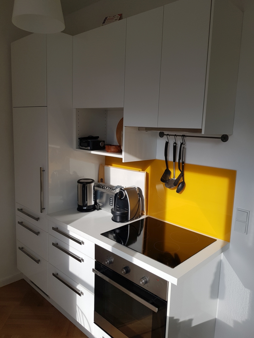Die Küche ist mit Cerankochfeld, Geschirrspüler, großem Spülbecken, Mikrowelle, Wasserkocher, Nespresso-Kaffeemaschine, Eierkocher und Toaster ausgestattet. Geschirr, Besteck, Geschirrtücher sowie Spülmittel und Spülmaschinentabs sind vorhanden. Auf Anfrage stehen ein Gitterbett und ein Hochstuhl zur Verfügung. Bei längeren Aufenthalten können Waschmaschine und Trockner im Keller mitgenutzt werden. WLAN ist kostenlos verfügbar.