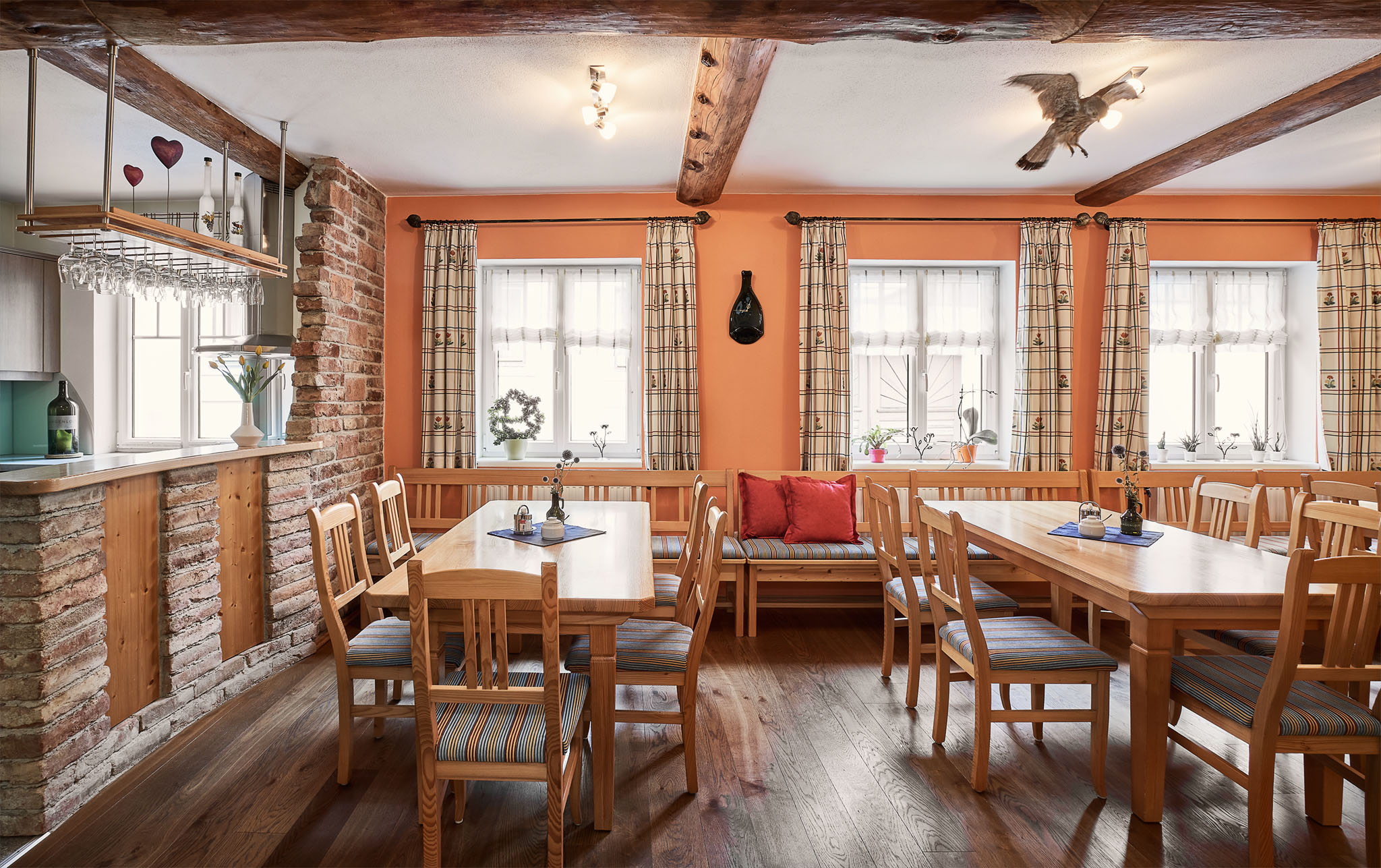 Ein in sehr ruhiger Lage liebevoll eingerichtetes, kleines und sehr gepflegtes Gästehaus bietet die besten Voraussetzungen für entspannte Urlaubstage fern ab vom stressigen Alltag. Der Innenhof mit Pergola und Sonnenterrasse im ersten Stock lädt zum Entspannen und Verweilen ein. Überdachte Parkplätze, Fahrradabstellplatz im Innenhof mit Lademöglichkeit für E-Bikes stehen zur Verfügung.