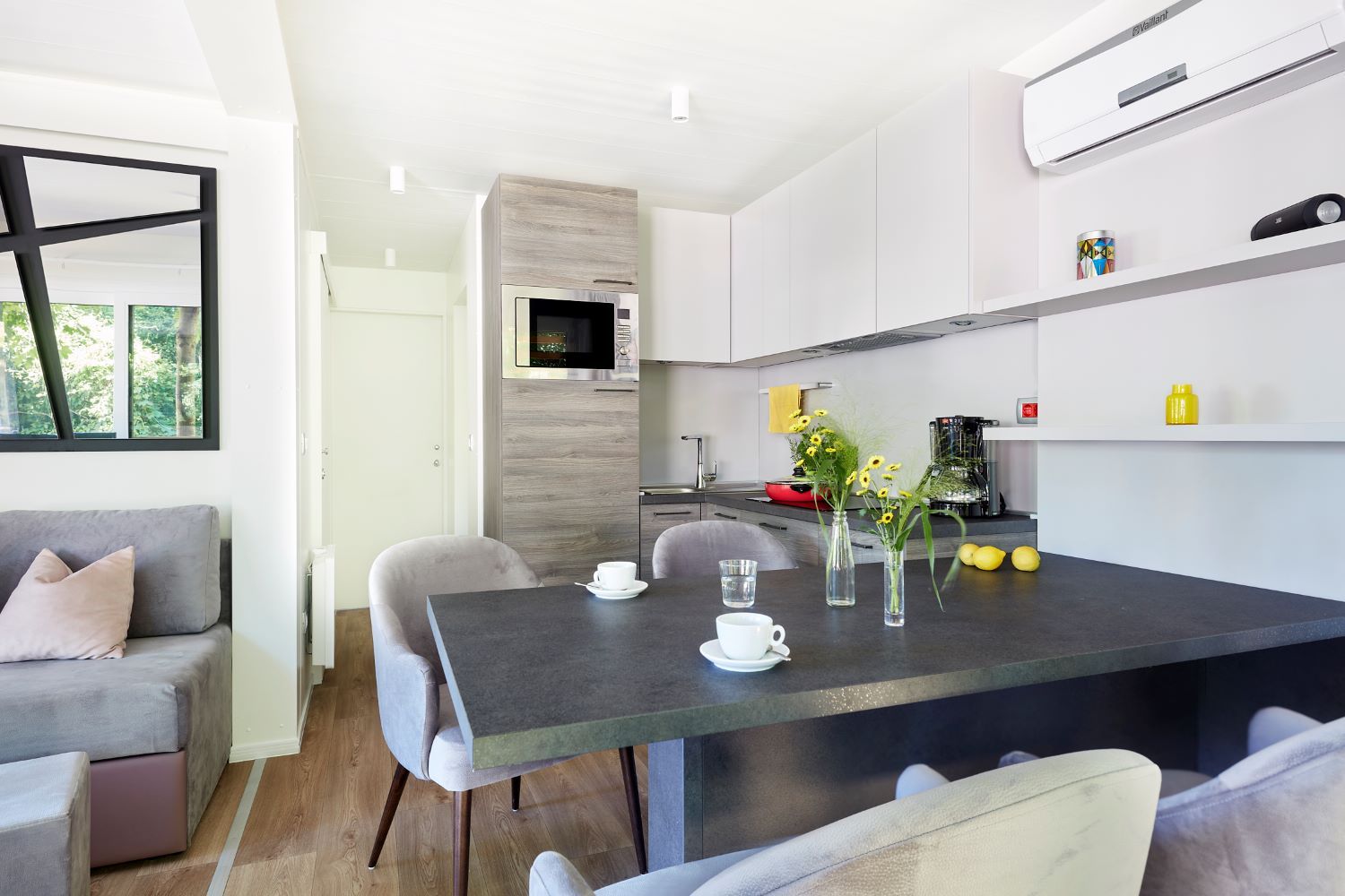 In Top-Lage direkt am Donauradweg werden hier Komfort Mobilheime mit jeweils 32 m², zwei - drei Schlafzimmern, eigenem Bad & WC und großer Terrasse angeboten.
