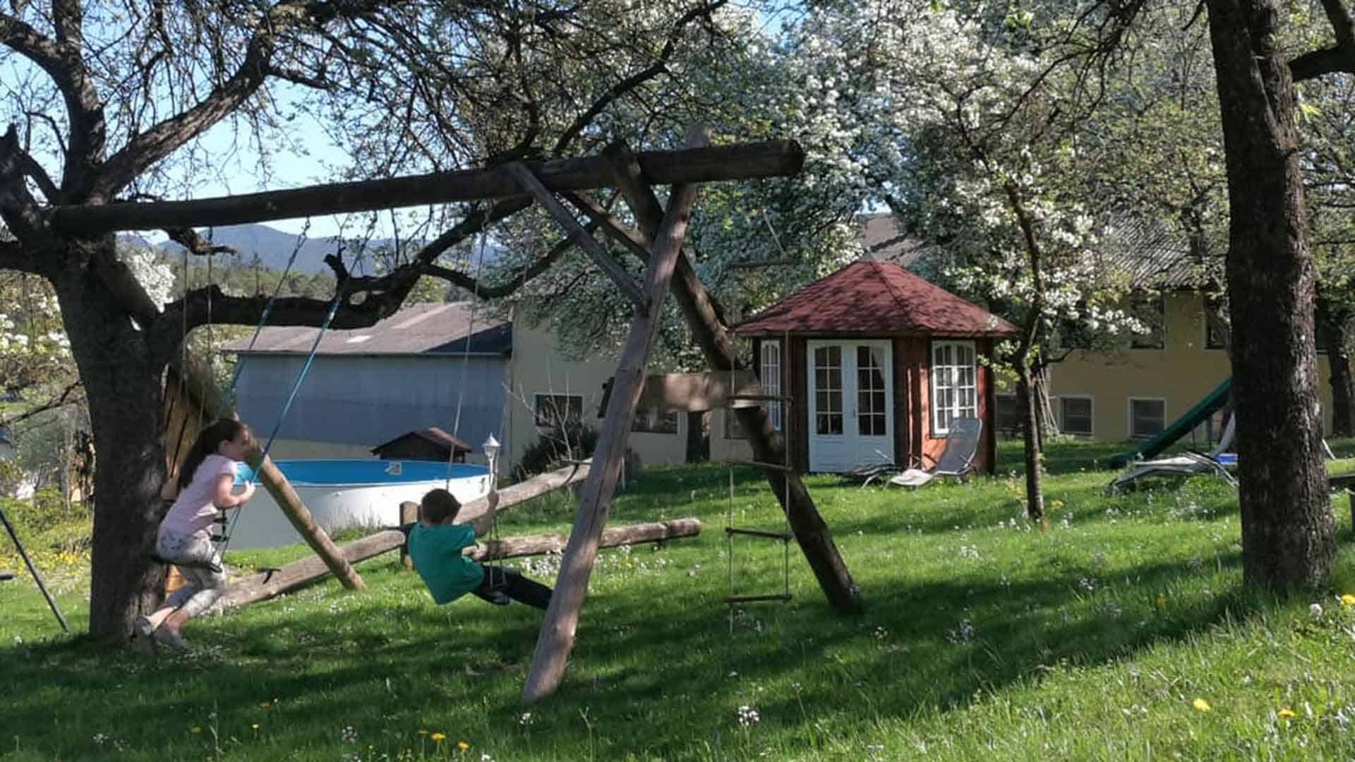 Für Familien bietet der Mayerhof vielfältige Freizeitmöglichkeiten: Outdoor‑Pool, Kinderspielplatz, Trampolin, Schaukel, Seilbahn und Rutsche sind vor Ort vorhanden.