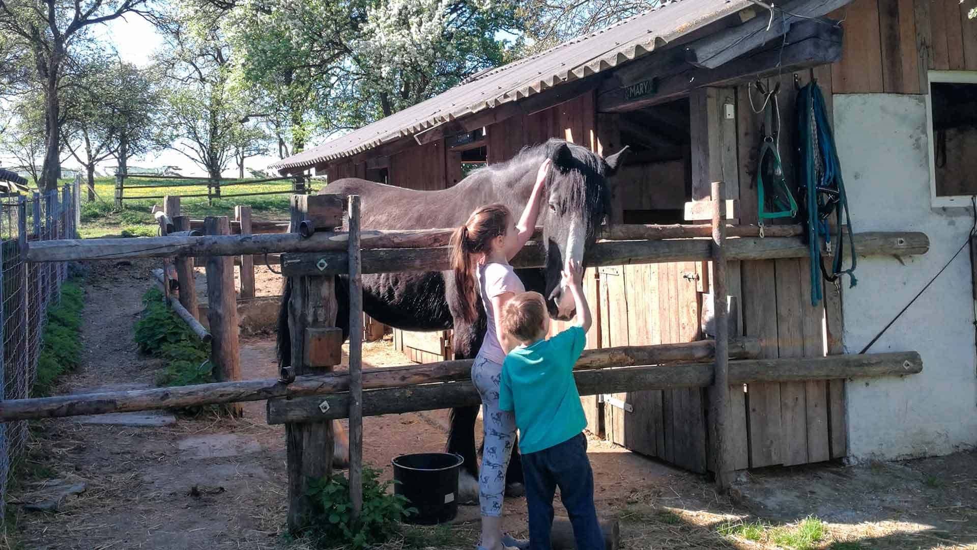 Gäste können aktiv am Hofleben teilnehmen – Stallarbeit, Traktorfahrten, Aussaat bis Ernte und Tierfütterung mit Ponys, Ziegen, Pferden und anderen Tieren stehen auf dem Programm.