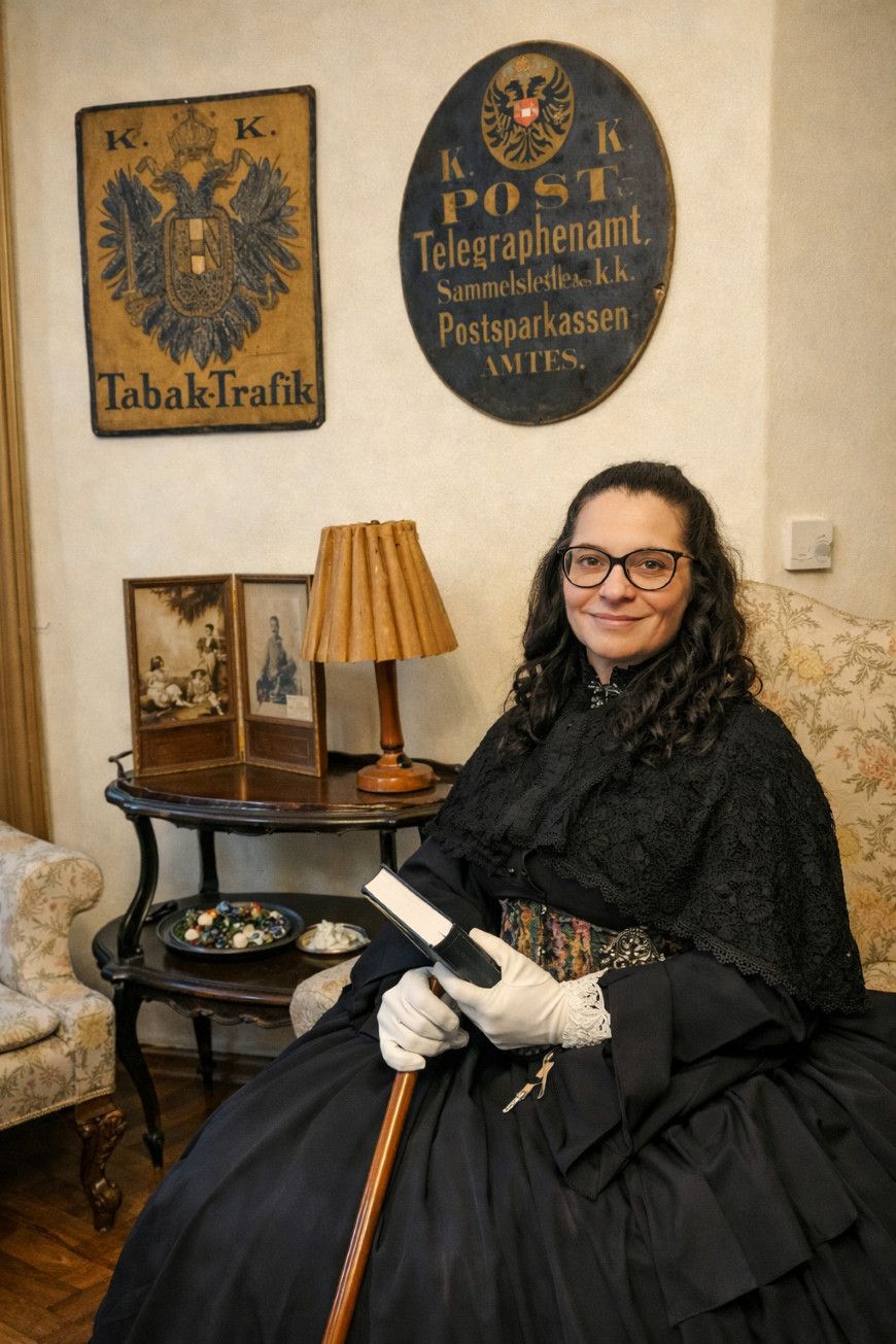 Gouvernante Leontine „Mademoiselle“ de Vathaire gewährt mit elegantem Ernst & Charme Einblicke in ihren traditionsreichen Berufsalltag. Mit geschultem Blick wacht sie über Haltung, Ordnung und feine Etikette im Haus. Gelegentlich prüft sie – stets höflich, aber mit spürbarer Strenge – auch die Benimmkenntnisse ihrer Gäste. Und wer ihre kleinen Tests besteht, verlässt sie um eine Nuance aufrechter und kultivierter.