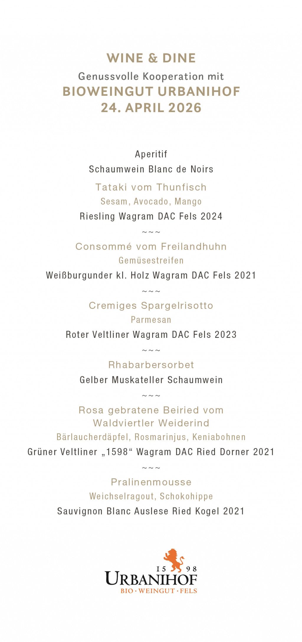 In Kooperation mit dem Bioweingut Urbanihof aus Fels am Wagram.