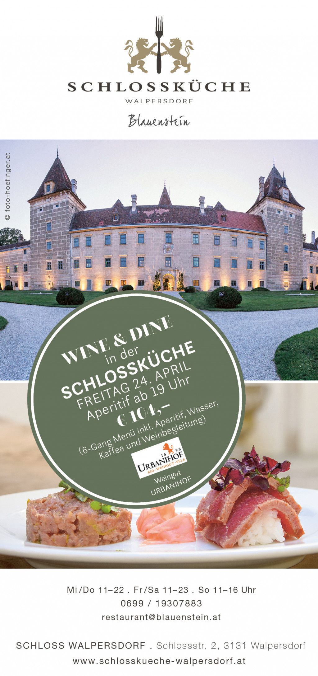 Einladung zum Wine & Dine in Kooperation mit Bioweingut Urbanihof