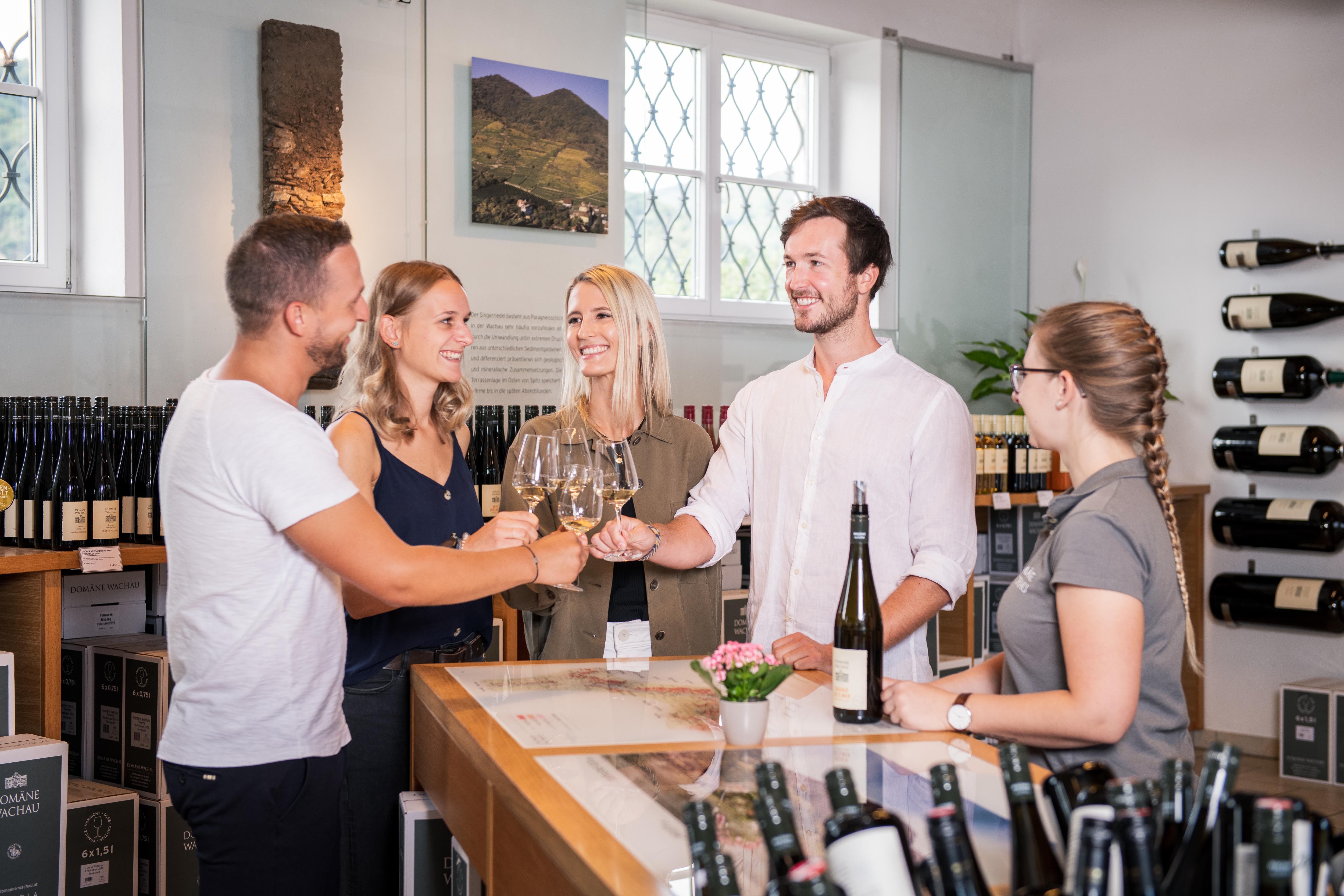 In jedem Weinbaugebiet entlang der Donau laden Vinotheken ein, die Weine der Region zu verkosten und zu kaufen. Gebietsvinotheken bieten dabei eine große Auswahl quer durch die gesamte Region – nicht selten in spektakulären Locations wie dem Loisium in Langenlois oder dem Weritas in Kirchberg am Wagram. Kleinere Shops und Privatvinotheken haben oft ein spezielles Sortiment.