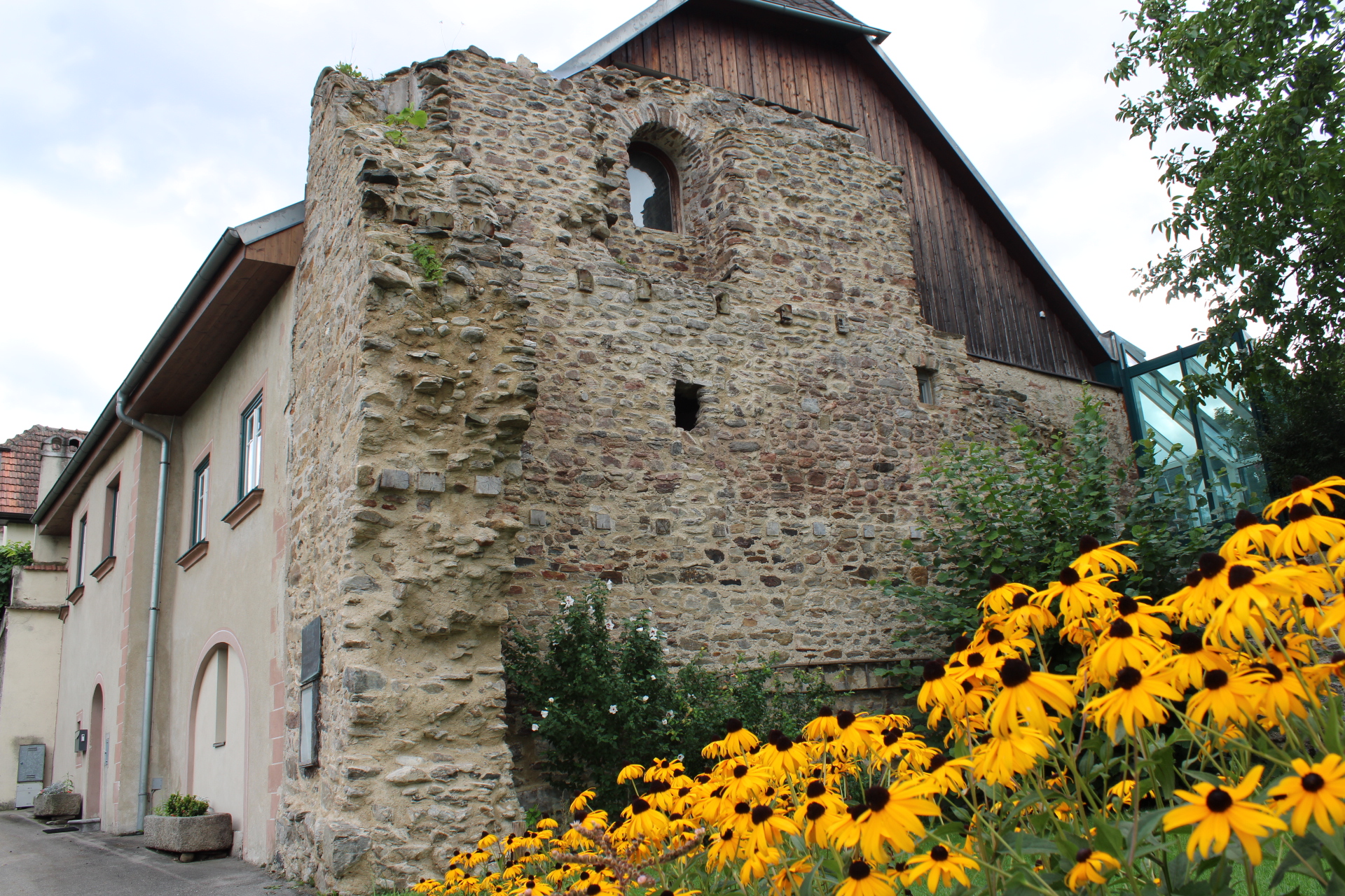 „Bauen im Altbestand“ war schon im Mittelalter das Motto in Bacharnsdorf. Die über 9 m hohe, massive Ruine des spätantiken Burgus wurde in das mittelalterliche Ortsbild integriert.