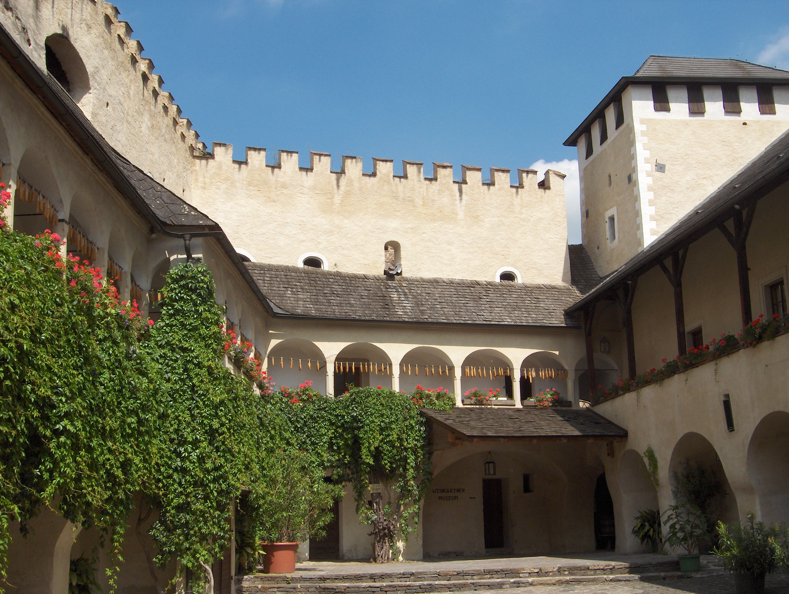 Als Teil der Wehranlage der Kirche von Weißenkirchen wurde der Hof 1542 um einen Arkadenhof im Renaissance-Stil und zwei Türme erweitert. Wo früher Armbrustschützen ihre Kunst erprobten, befindet sich nun das Wachaumuseum. In den zwei vergangenen Jahrhunderten hatten Maler wie Emil Strecker, Max Suppantschitsch und Johann Nepomuk Geller die Schönheit der Region entdeckt. Sie sind als Wachaumaler in die Geschichte eingegangen.
