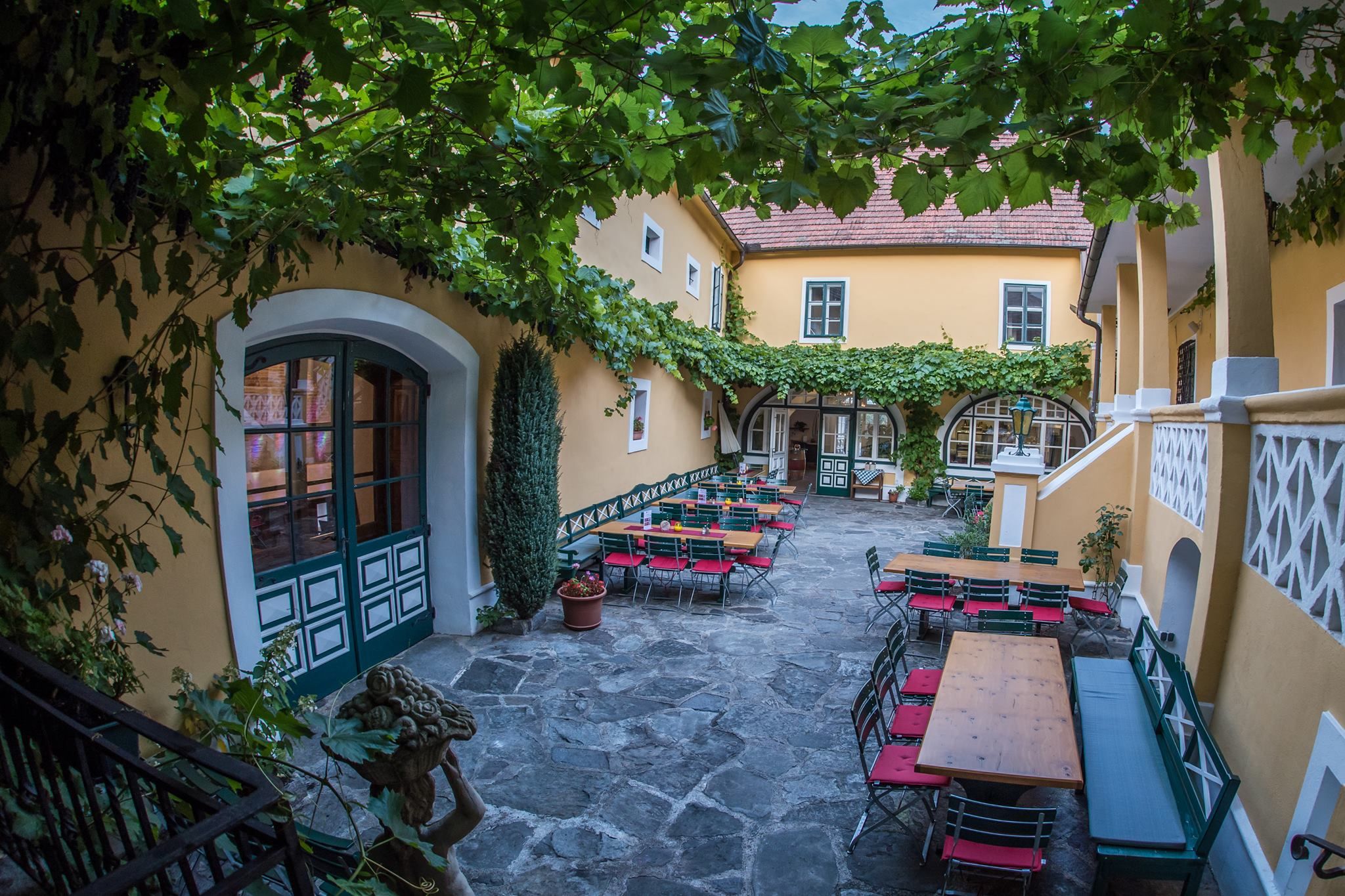 Der ehemalige „Lesehof“ des Benediktinerklosters Stift St. Göttweig aus dem 12. Jhd. wurde liebevoll restauriert und bietet in seinen weitläufigen und geschichtsträchtigen Kellergewölben die perfekte Kulisse für Familienfeierlichkeiten und Events in kleinerem und großem Rahmen. Der nostalgische Innenhof sowie der direkt anschliessende eigene Weingarten und die private Schiffsanlegestelle runden den Rahmen für Veranstaltungen ab.
