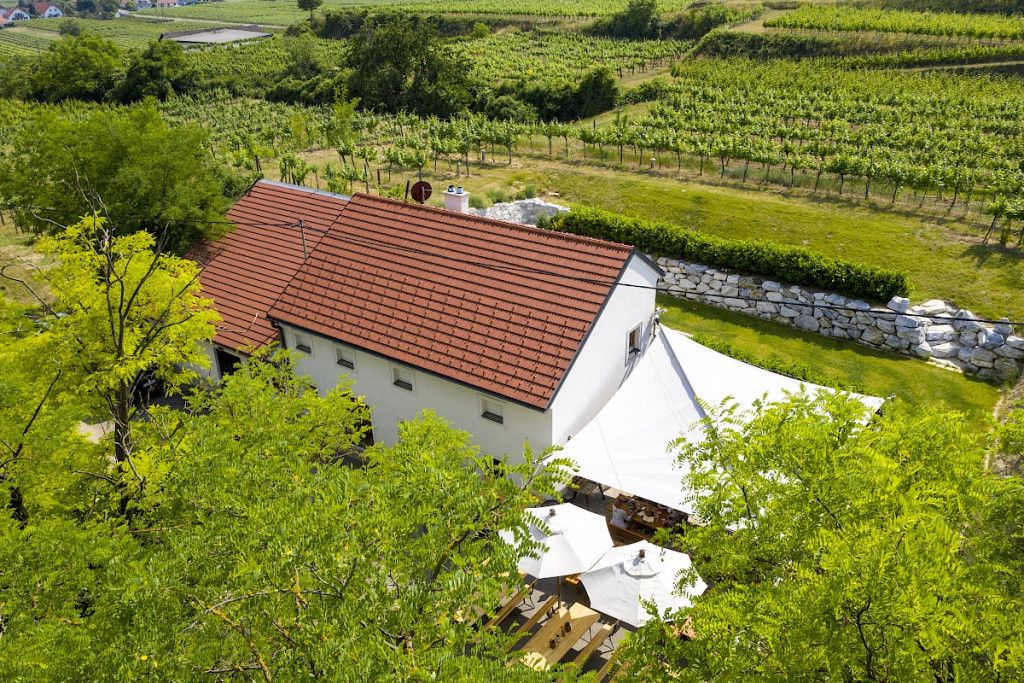 Im Gourmet-Heurigen von Iris und Jürgen Vigne in der Gedersdorfer Holzgasse wird mit Champagner und heimischen Winzersekte angestoßen, dazu werden ein Bosna vom Reh und weitere Kleinigkeiten gereicht.