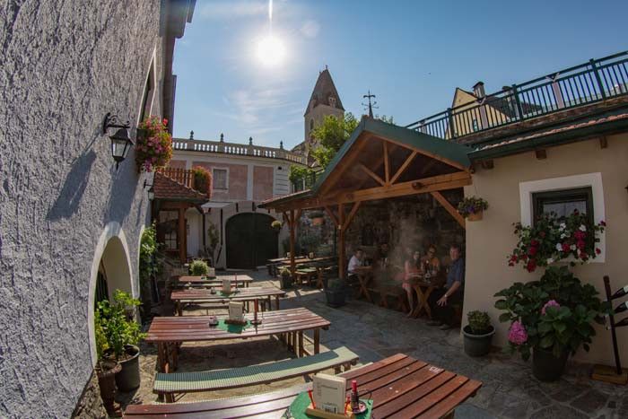 Seit dem Jahre 1668 besteht der geschichtsträchtige Hof, der 1870 in den Besitz unserer Familie gelangte. In unserem Familienbetrieb bewirtschaften wir 3,7 ha Rebfläche. Ein Großteil davon befindet sich auf steilen Steinterrassen die ausschließlich von Hand bewirtschaftet werden. Sechsmal im Jahr heißt es aus g´steckt ist und wir öffnen unsere Buschenschank für Sie. Ein besonderes Merkmal dafür ist der grüne Buschen der in dieser Zeit ausgehängt wird.Durch das große grüne Holztor gelangen Sie in unseren gemütlichen Innenhof, mit Blick auf den Kirchturm, der im Sommer für ca. 60 Gäste Platz bietet. Im Heurigenlokal selbst können Sie unter der alten Baumpresse verweilen die ein besonderes Ambiente vermittelt.
