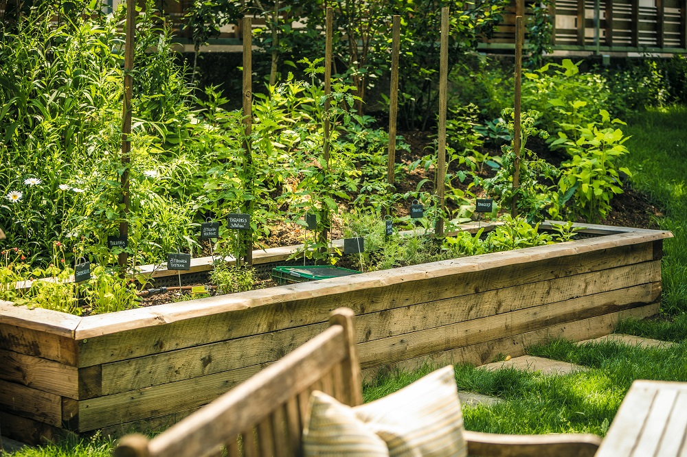 Im Donaugartl wachsen rund 66 verschiedene Kräuter – vom Schnittlauch bis zur Schafgarbe und von der Zitronenverbene bis zum Zimtpfeffer. Sie werden in der Küche verarbeitet und verfeinern fast jedes Gericht auf der Karte. Wer möchte, kann nach Lust und Laune nachwürzen: Zum Besteck gibt’s eine Gartenschere, mit der man die Schätze aus dem Kräutergartl selber ernten kann.