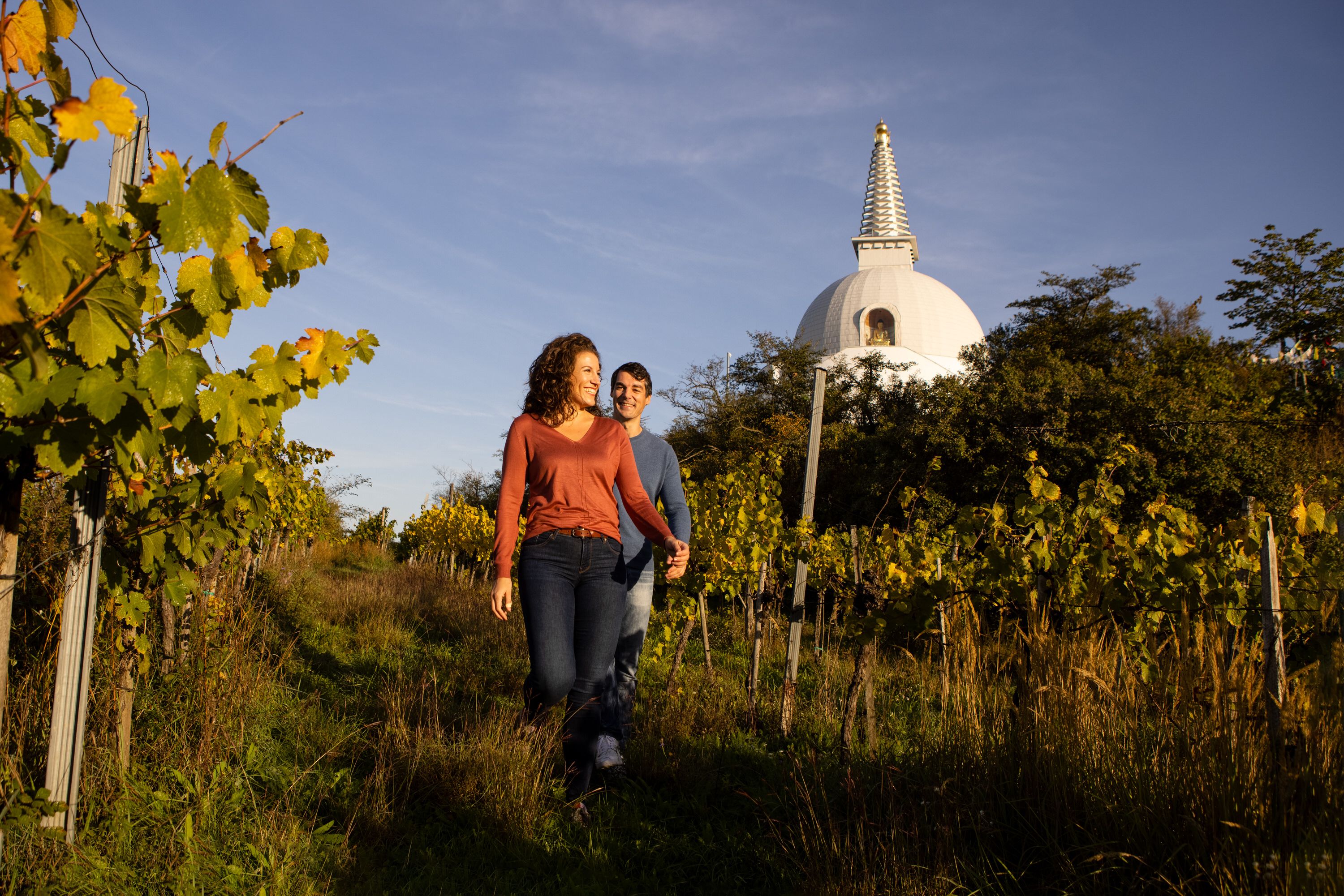 Zwischen der Donau und der Geländestufe des Wagrams entfaltet sich eine Landschaft, in der Natur und Kultur auf besondere Weise ineinandergreifen. Die Wanderwege führen von den stillen Auen des Flusses hinauf zu den geschwungenen Weinterrassen, wo der Löss in warmen Farben leuchtet und Reben in langen Reihen den Hang hinaufwachsen. Zwischen Kellergassen und Feldwegen zeigt sich die Weinregion Wagram als eine Landschaft der Gegensätze – ruhig und weit, zugleich kraftvoll und lebendig.