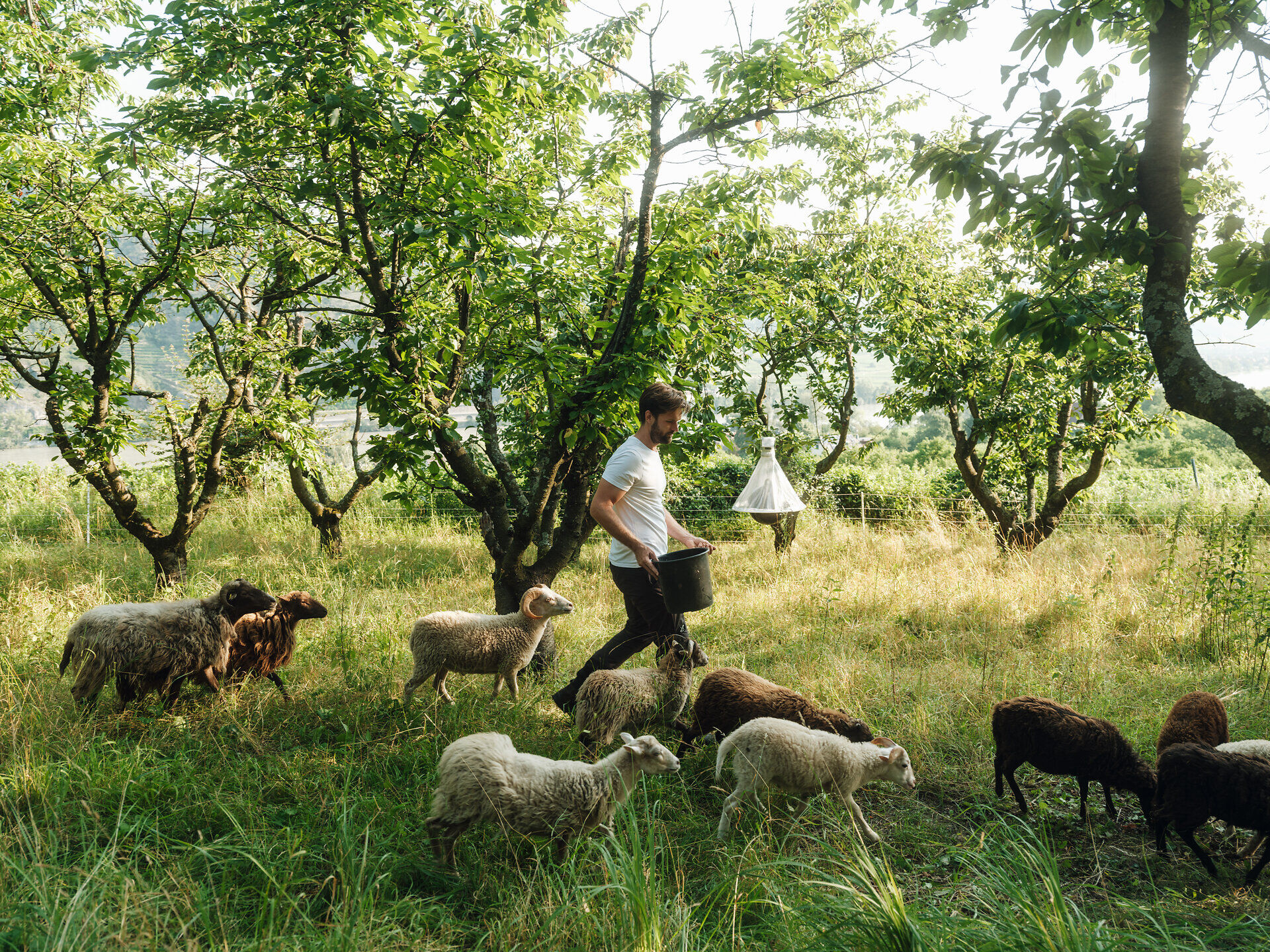Wer Schafe in der Wachau sichtet, ist wahrscheinlich in der Nähe der Trockenrasen – ein wichtiger Teil der Wachauer Kulturlandschaft und Lebensraum für zahlreiche gefährdete Tiere und Pflanzen. Die Schafe übernehmen im Sommer einen Teil der Landschaftspflege – gemeinsam mit den Wachau Volunteers. Das sind freiwillige Helferinnen und Helfer, die aus allen Ecken der Welt in die Wachau kommen. Auch, um beim „Ringeln“ von nicht heimischen Gehölzen zu helfen. So wird die Ausbreitung von Neophyten wie dem Götterbaum eingeschränkt.