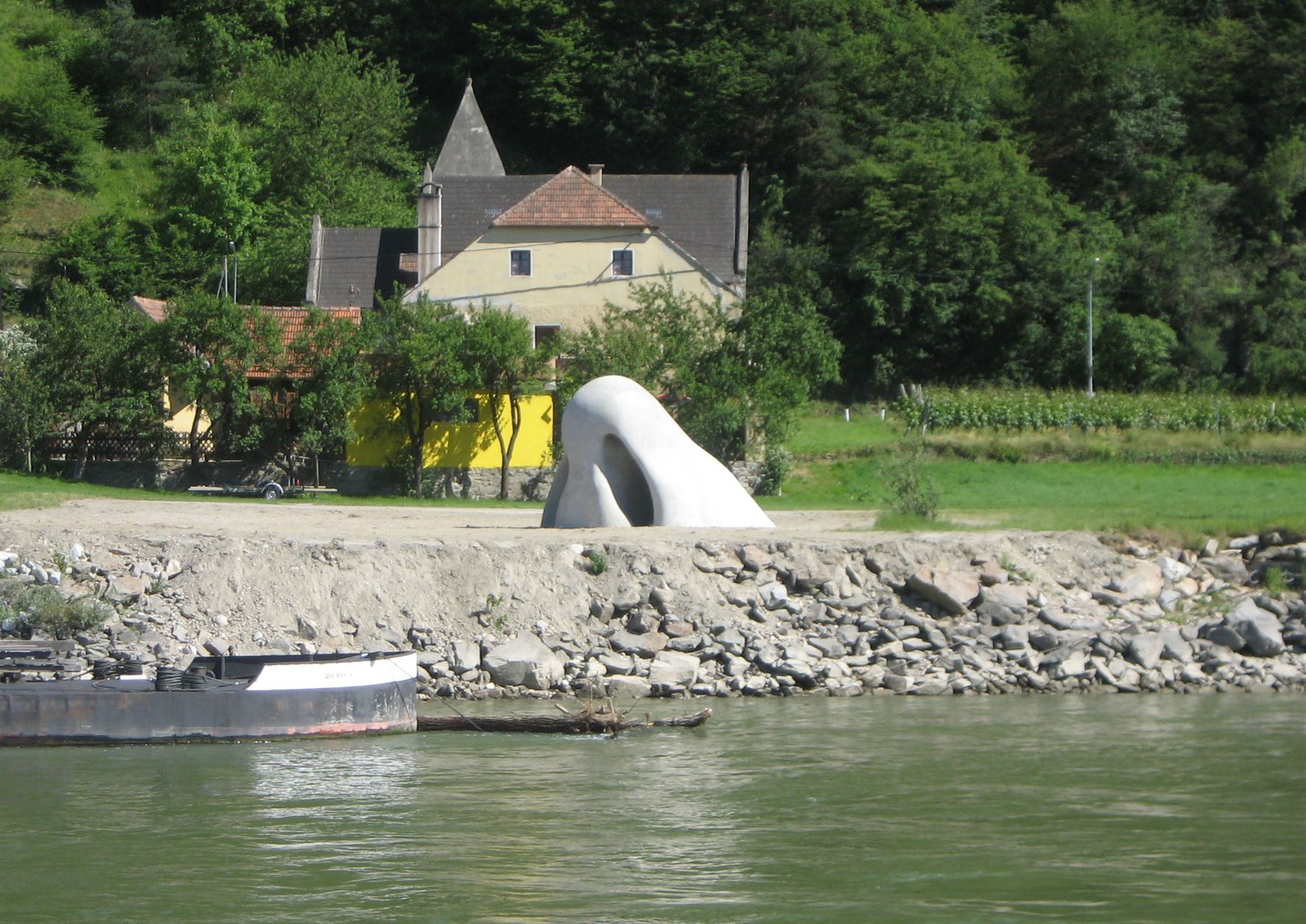 So geruhsam die Donau ihren Weg nimmt, so gemächlich auch die Fähre über den Fluss „schippert“: Wer im Wachau-Idyll St. Lorenz ankommt, ist dennoch „eine Nase voraus“. An der Anlegestelle der Fähre ragt eine ebensolche mächtig aus dem Uferboden. Groß genug, um die Nasenlöcher betreten zu können! Oder ist dieses Werk der österreichischen Künstlergruppe Gelitin gar nur die Nasenspitze eines vergrabenen Riesen? Bitte nicht ausgraben ;- )